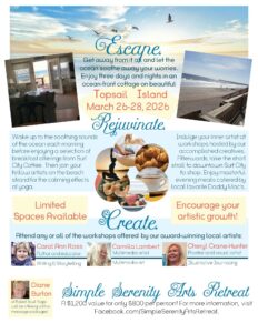 Chery is a professional artist and art educator. Her style is to paint love and light and share the joy of creating with others. Cheryl is also the owner and operator of PAINT WITH ME, an ensemble of creativity where she imparts her knowledge and caring to students. I know you will enjoy Cheryl’s warmth and wisdom as you join us this March at Simple Serenity Arts Retreat.